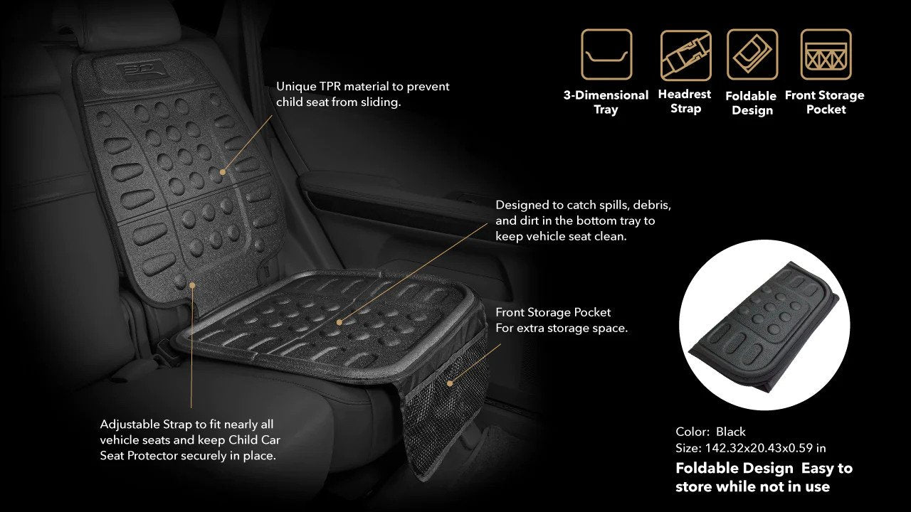Protect your car seats with our 3D Mats Child Seat Protector, designed to keep your seats safe and spotless while using a child seat. Featuring a 3D tray shape, extra storage, and anti-skid backing, this protector ensures your car stays clean, organized, and secure on every drive.