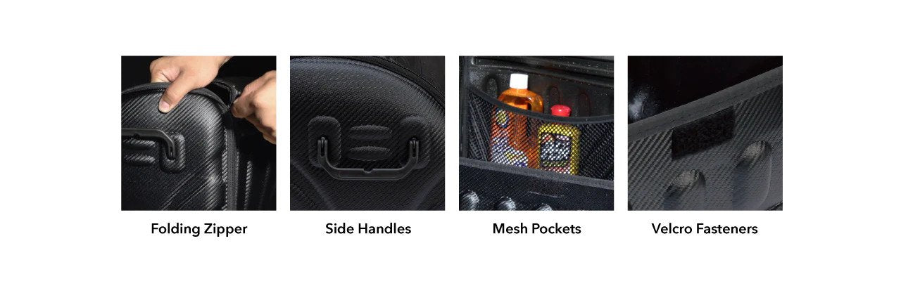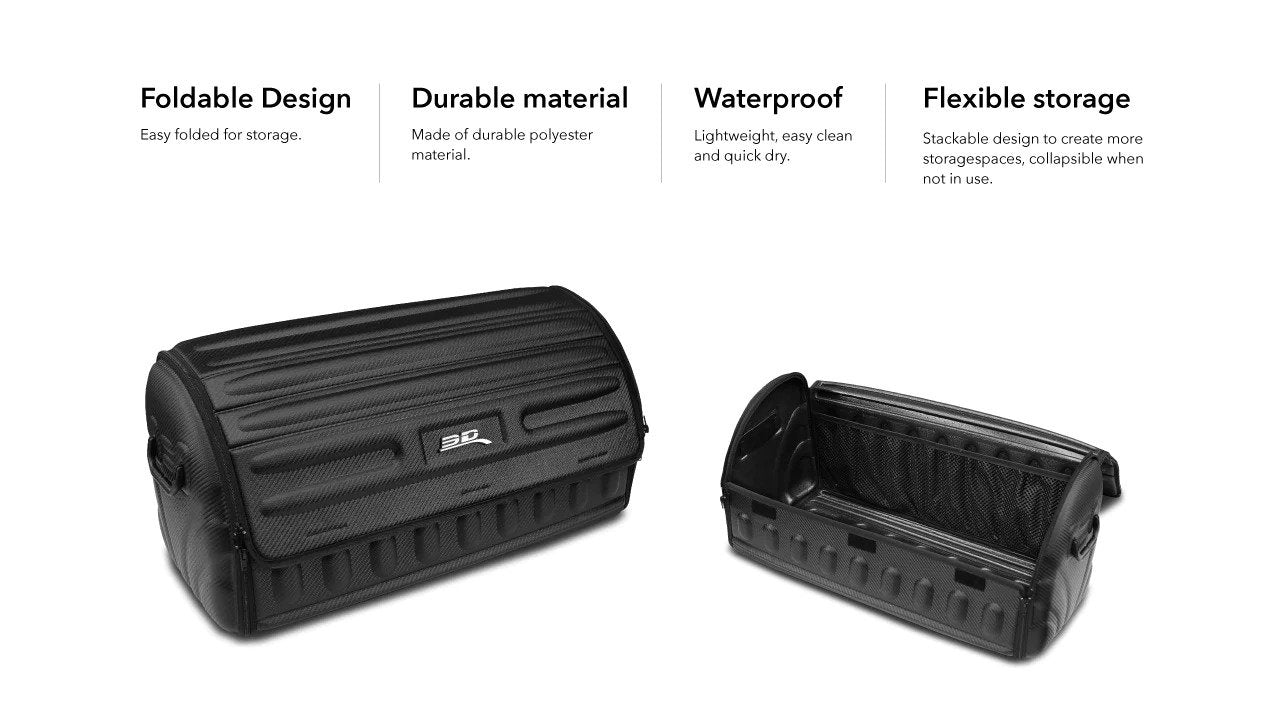 Our Handy Trunk has foldable design allows for easy storage, crafted from durable polyester material. Lightweight and waterproof, it's easy to clean and quick to dry. The flexible, stackable design offers additional storage space and can be collapsed when not in use.